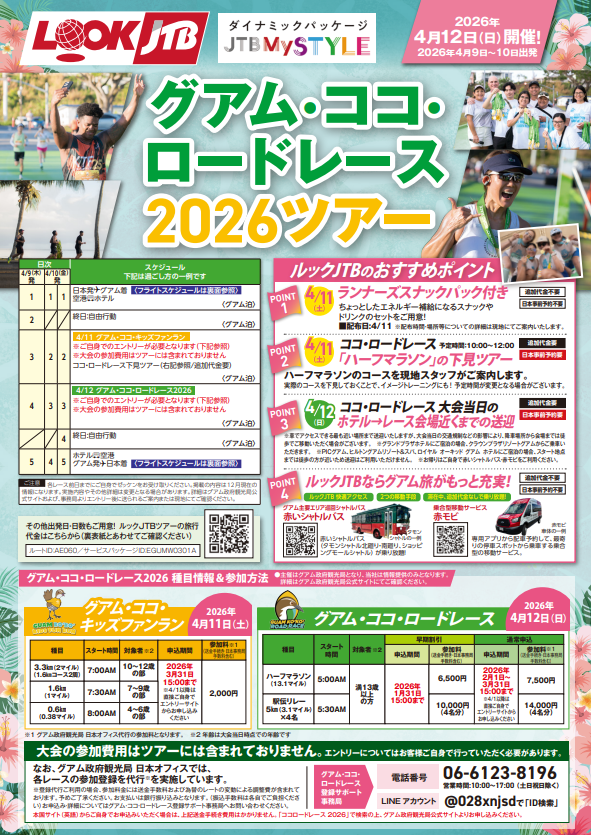 【JTB】グアム4日間 グアム・ココ・ロードレース2026ツアー